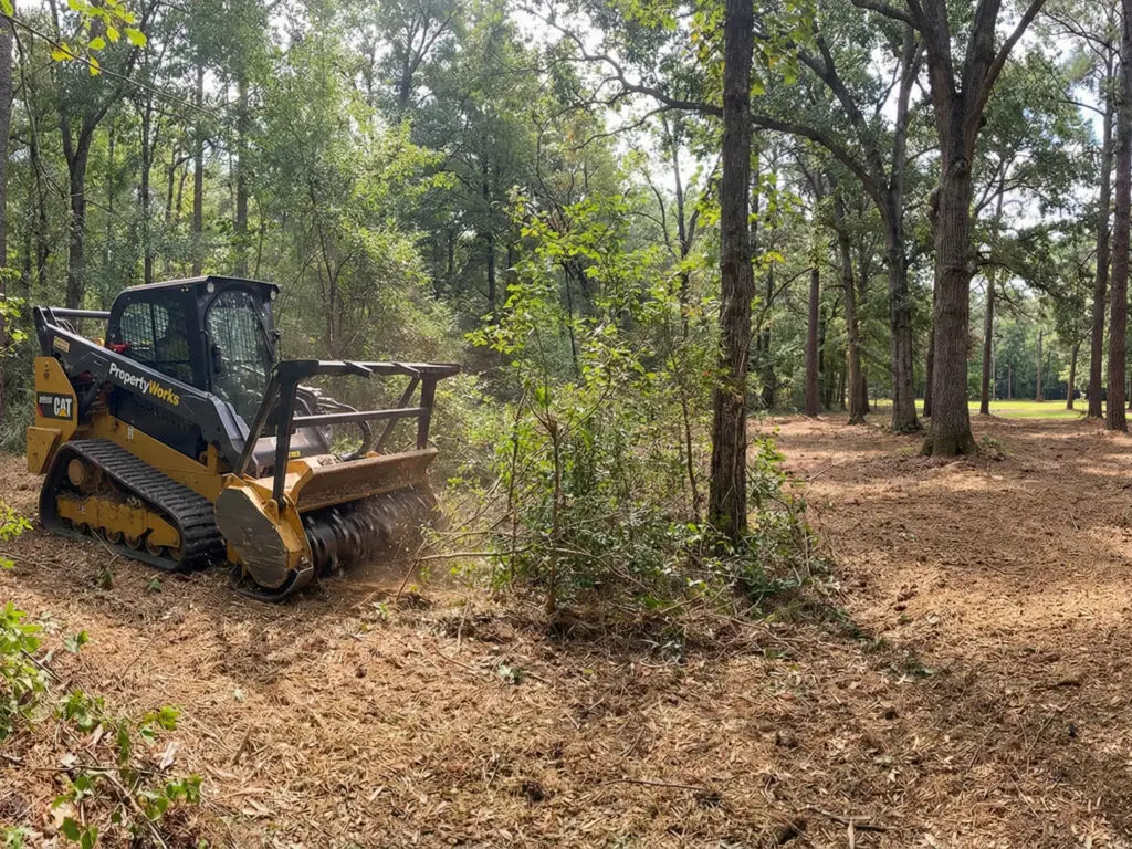At PropertyWorks, we understand that true property beautification requires more than just raw mechanical power; it demands absolute precision, specialized expertise, and a deep respect for your land. Our seasoned operators utilize state-of-the-art forestry mulching equipment specifically designed to navigate complex terrain and tight spaces with minimal ground disturbance. We skillfully target nuisance vegetation—like briars, saplings, and invasive vines—while carefully preserving the legacy trees and natural topography that make your property unique.